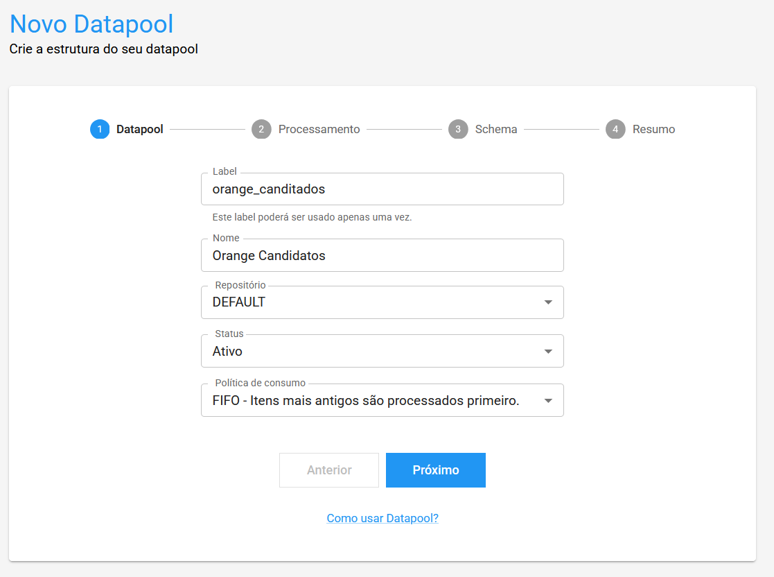 - Label: O identificador único que será utilizado para acessar o Datapool.