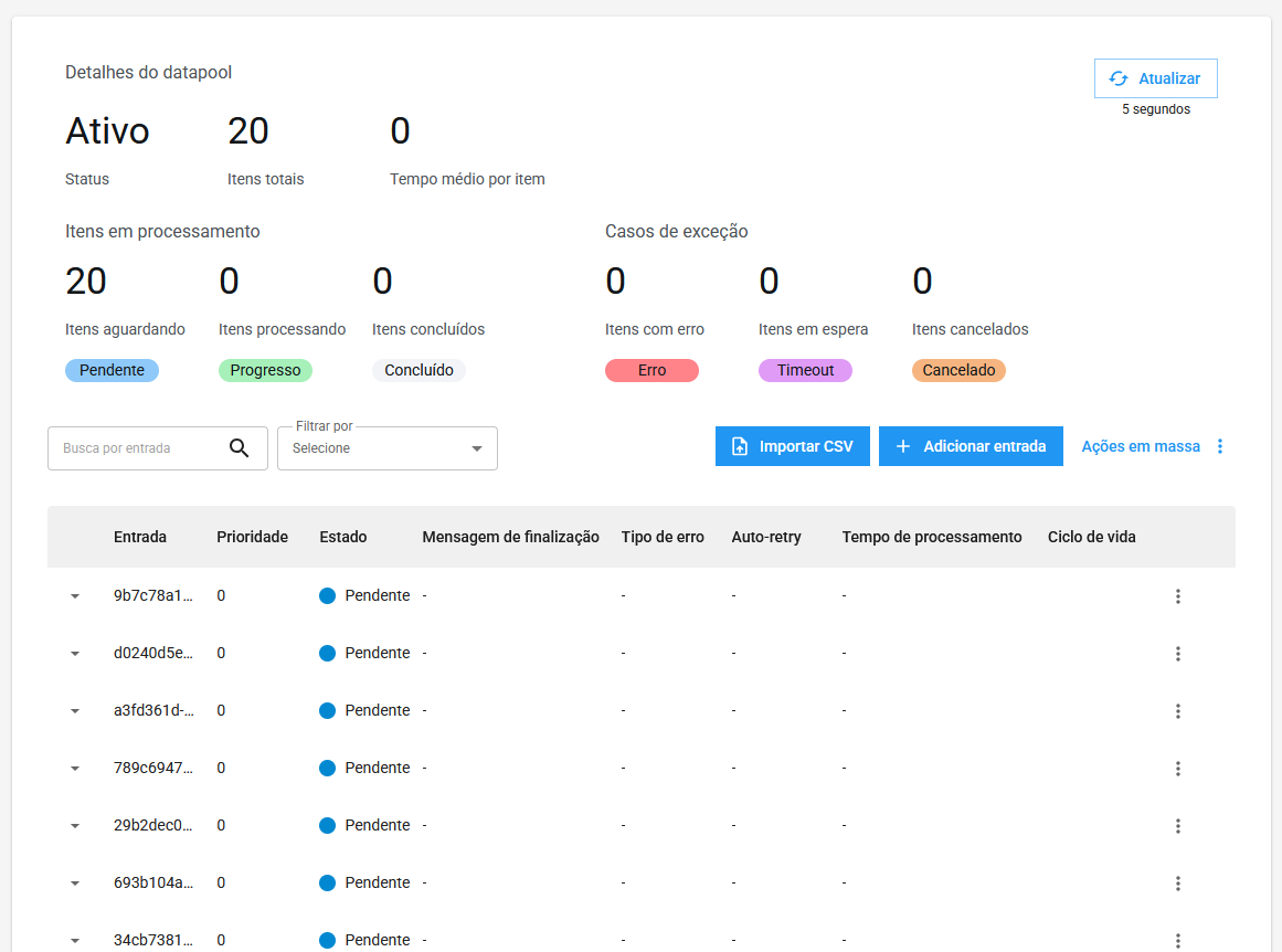 - Nunca disparar nova tarefa: O Datapool nunca será responsável por disparar tarefas de um processo de automação.